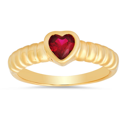 14k Gold Over Silver Bezel-set Heart Gemstone Ring